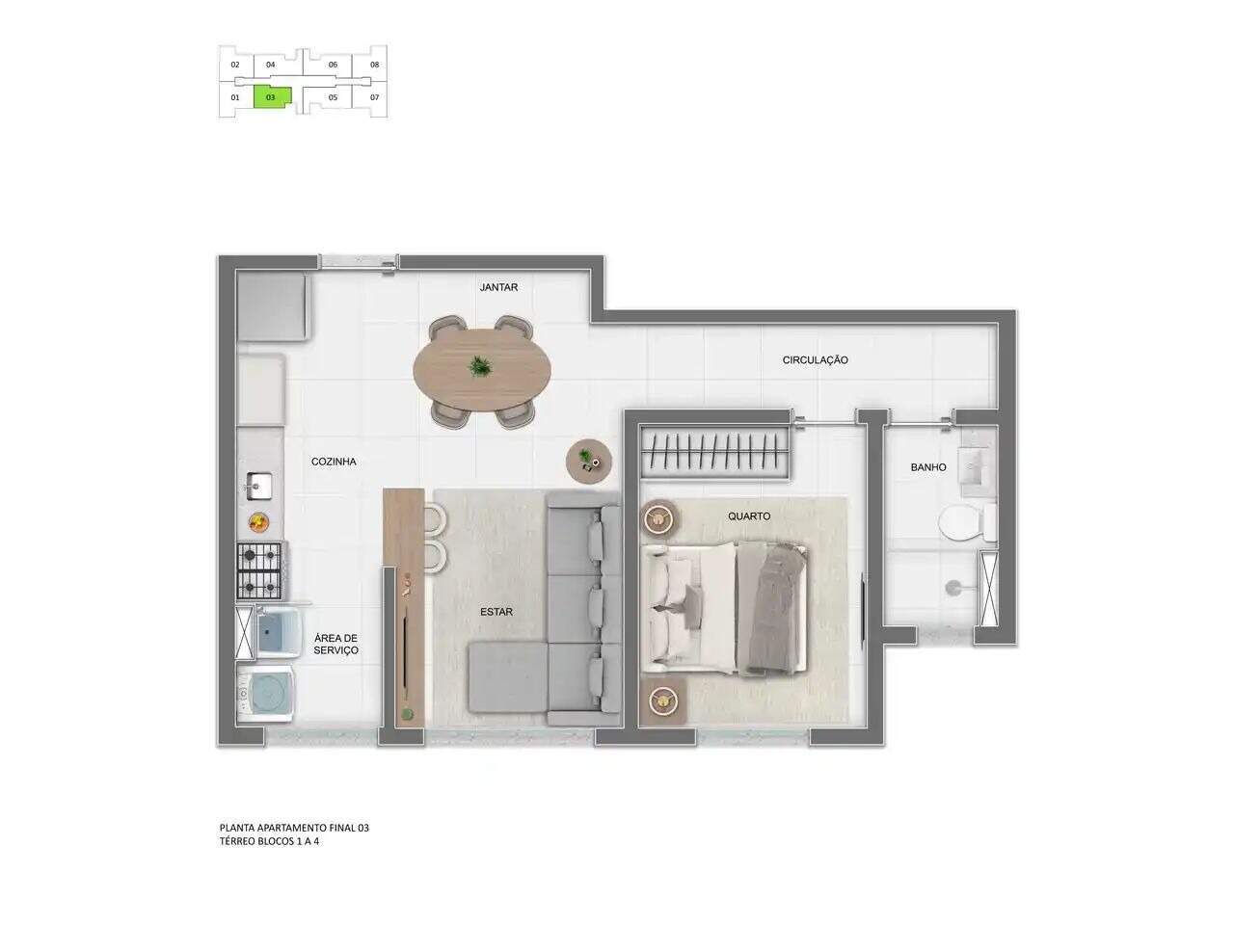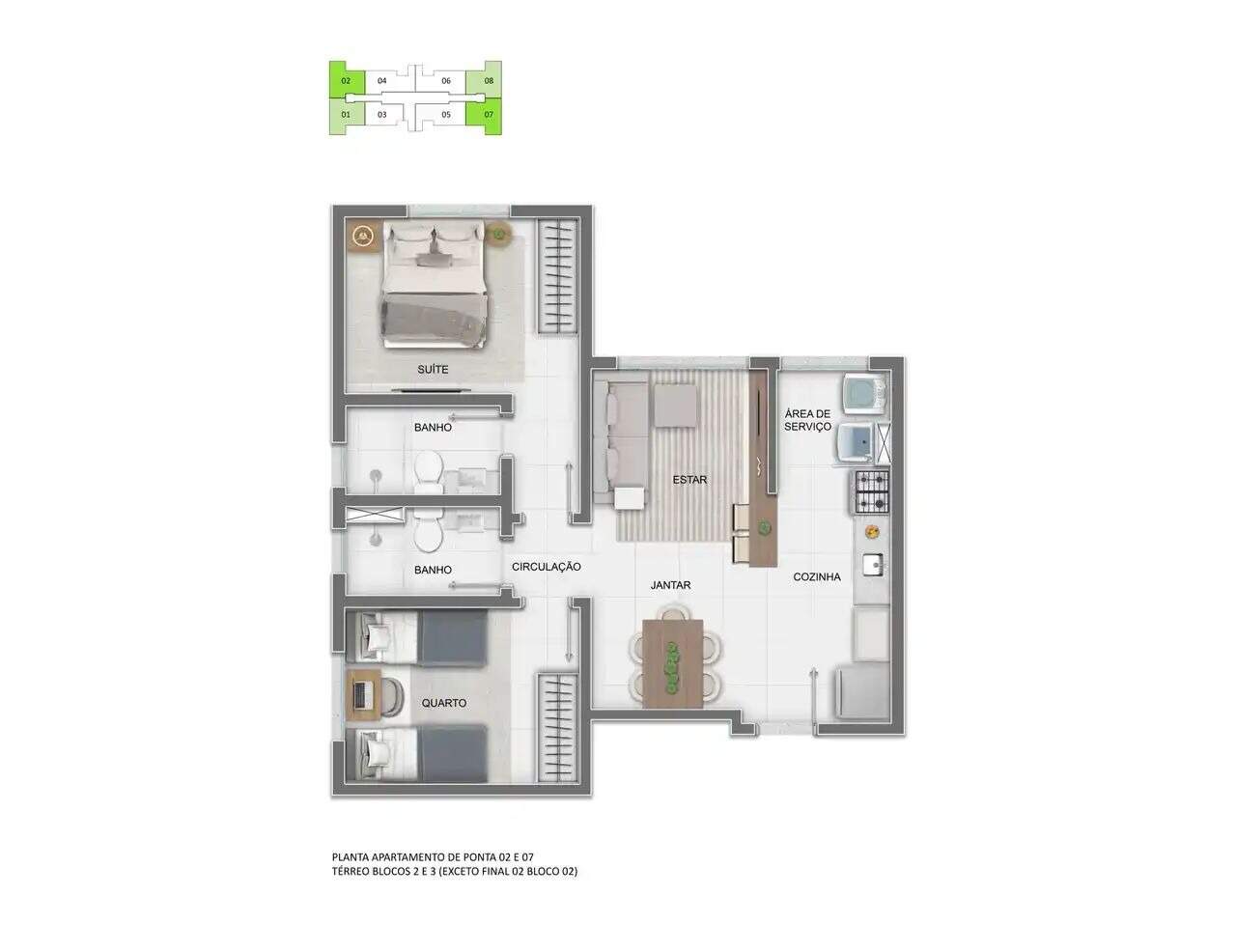 São apartamentos de 2 quartos, com suíte, metragens entre 49m² e 52m², sala para 2 ambientes, cozinha e área de serviço! As unidades contam com acabamento de qualidade, cozinha e banheiros com bancadas em granito e previsão para ar-condicionado nos quartos 01 vaga de garagem.
