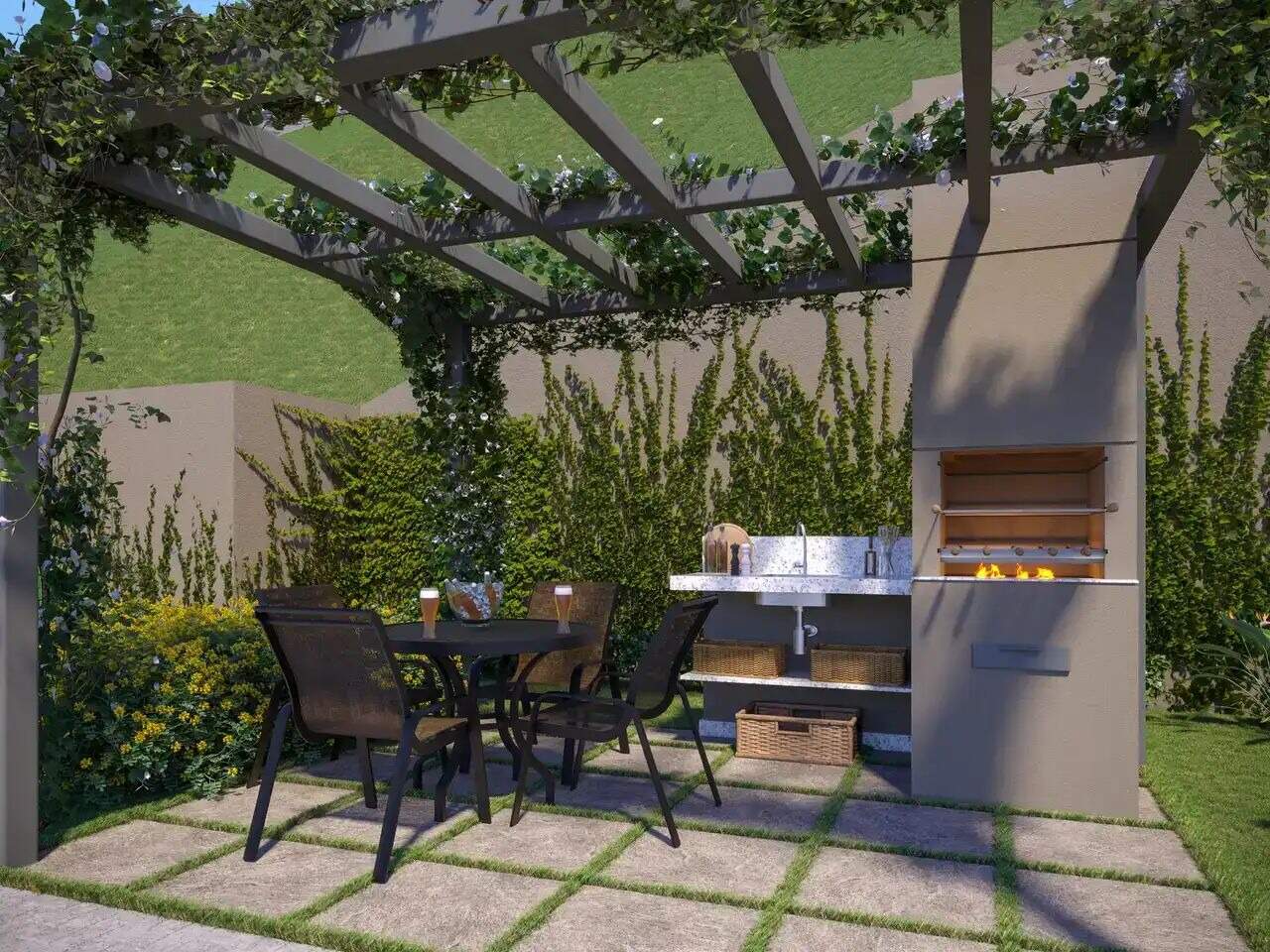 O condomínio oferece uma estrutura completa de lazer, segurança e conveniência: piscinas adulto e infantil com solarium, salão de festas, churrasqueiras, espaço luau, academia completa, área fitness ao ar livre, quadra, playground, espaço kids e até uma mini rampa de skate.