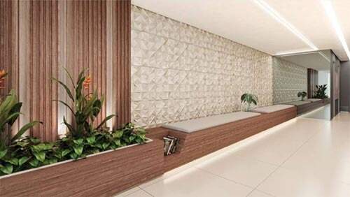 Hall elegante, elevadores modernos e áreas comuns bem cuidadas