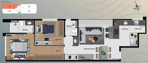 Algumas unidades especiais podem apresentar metragem ampliada e configurações mais espaçosas, atendendo quem deseja mais conforto ou flexibilidade no layout.