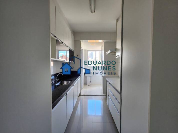 Apartamento de frente, com 80,12 m², sol da manhã, sala para dois ambientes, varanda foi incorporada na sala, piso em porcelanato, são 03 quartos com armários, sendo uma suíte, com piso em durafloor, banhos social e da suíte com pisos e bancadas em mármore, armários, box e espelhos, cozinha com armários, área de serviço com armário, banho de empregada.
