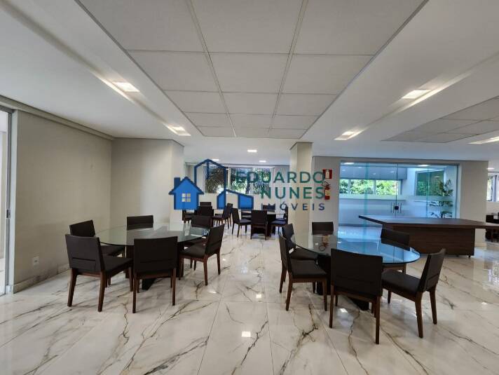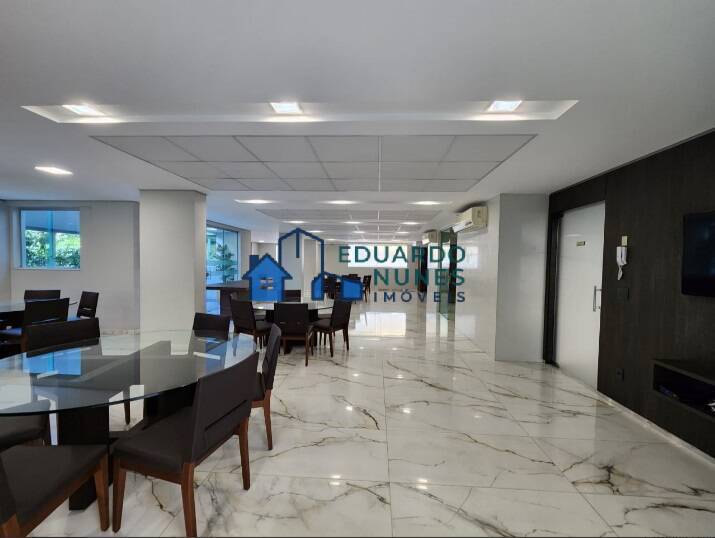 Prédio todo revestido em porcelanato polido, detalhes em granito, são 06 apartamentos por andar (04 unidades de 03 quartos e 02 unidades de 02 quartos), total de 90 unidades, portaria física 24 horas, 03 elevadores, salão de festas e espaço gourmet com todo mobiliário, cozinha do salão de festas com equipamentos, sauna, quadra poliesportiva, academia, piscinas aquecidas, playground.