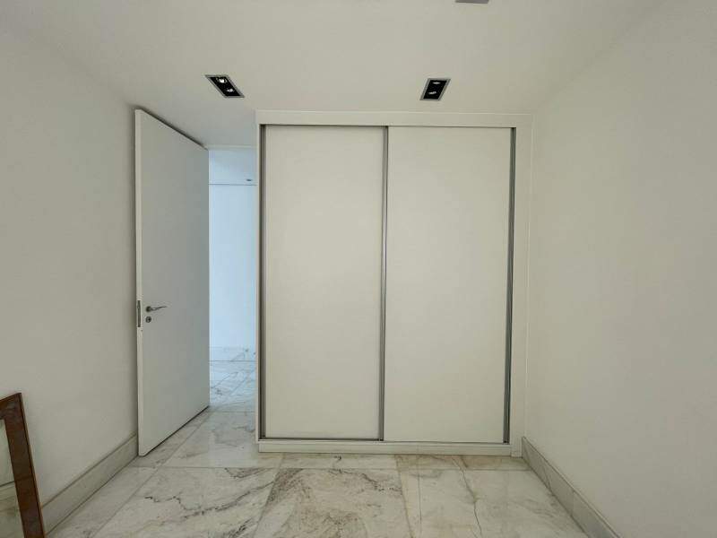 3 quarto amplos, um com piso em tábua corrida, e dois com piso em mármore, armários, sendo uma suíte com closet, revestido em mármore claro, box em vidro temperado, chuveiro com ducha metálica, iluminação embutida no teto, espelho e bidê